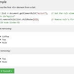 여기 예제에서는 ul안에 잇는 엘리먼트의 하위 객체들을 없애는 메소드 입니다. 참고사이트https://www.w3schools.com/jsref/met_node_removechild.asp